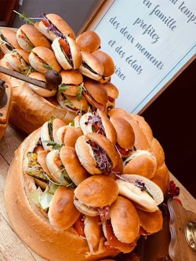 50 mini sandwiches mous ou triangles de tartines avec les 10 assortiments proposés dans le Tout Poisson et le Tout Charcuterie.